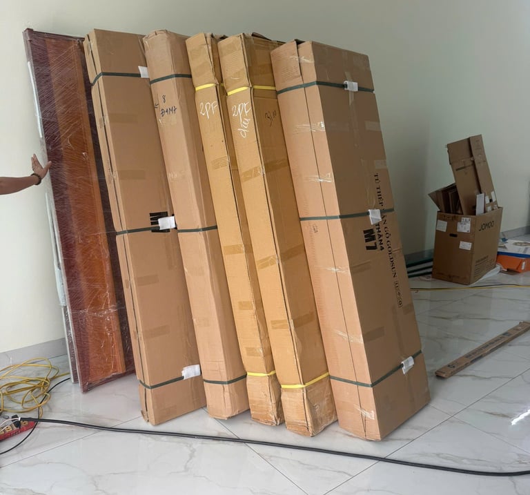Một trong những điểm cộng lớn nhất của tủ thép vân gỗ là thiết kế thông minh dạng module. Sản phẩm được đóng gói gọn gàng theo từng kiện (thùng carton), giúp tối ưu hóa không gian vận chuyển. Nhờ đó, việc khuân vác lên các tầng cao, chung cư, hay đi qua những khung cửa hẹp trở nên cực kỳ dễ dàng. Khi đến vị trí mong muốn, tủ có thể được lắp ráp nhanh chóng, vừa vặn ở mọi không gian mà không tốn quá nhiều sức lực.